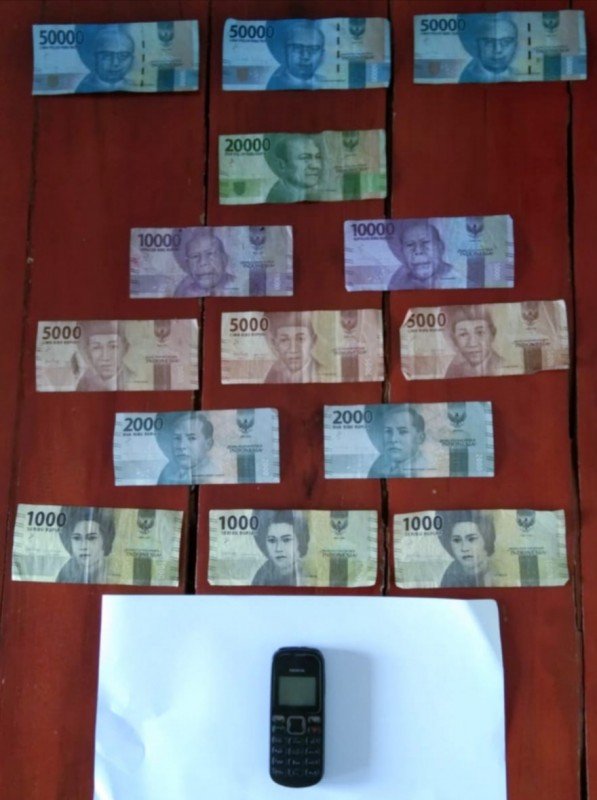 "Saat penangkapan, dari tangan pelaku ditemukan barang bukti 1 unit Hp merek Nokia berisi Keluar masuk angka-angka tebakan judi Togel, dan uang tunai sebanyak Rp. 212.000", jelas kanit peraih award itu.