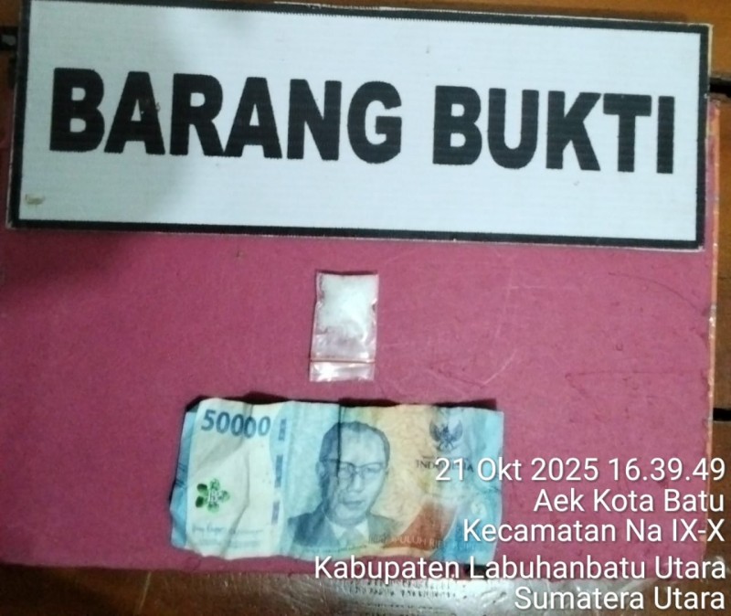 SIGAPNEWS.CO.ID | LABURA - Satuan Unit Reskrim Polsek Na IX-X kembali menorehkan prestasi dalam pemberantasan peredaran narkotika di wilayah hukumnya. Kali ini, petugas berhasil mengungkap kasus penyalahgunaan narkotika jenis sabu di Lingkungan V, Kelurahan Aek Kota Batu, Kecamatan Na IX-X, Kabupaten Labuhanbatu Utara, pada Selasa (21/10/2025) sekitar pukul 16.00 WIB.