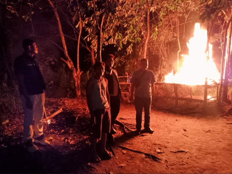 “Di lokasi ditemukan dua alat hisap bong, tiga mancis, serta tiga plastik klip transparan yang diduga bekas penggunaan sabu. Pondok perladangan yang diduga kerap dijadikan tempat penyalahgunaan narkoba ini kemudian dimusnahkan dengan cara dibakar, disaksikan aparat desa dan masyarakat setempat,” tegas AKP Jhonly.