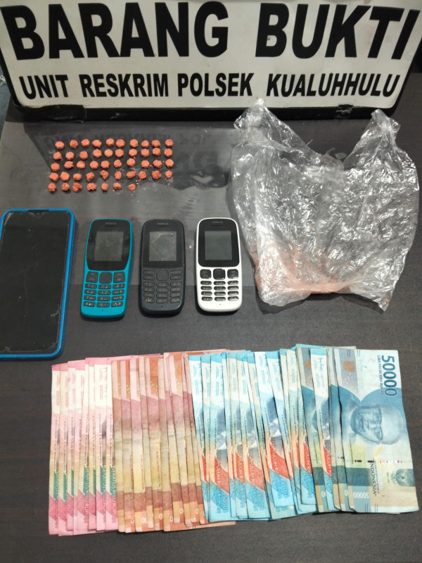 Adapun barang bukti yang diamankan petugas meliputi 47 butir pil diduga ekstasi warna oranye dengan berat bruto 18,29 gram yang dibungkus dalam satu plastik asoi tembus pandang. Selain itu, polisi turut menyita empat unit telepon genggam masing-masing satu unit Realme, satu unit Nokia warna biru, satu unit Nokia warna hitam, dan satu unit Nokia warna putih.
