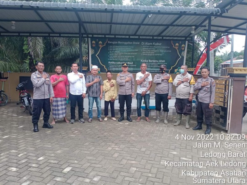 SUMUTNEWS | LABURA - Kapolsek Kualuh Hulu AKP Isgunarko didampingi Kanit Intelkam Iptu TM Ginting, Kanit Binmas Ipda Sudibyo, serta Jajaran Polsek kualuh Hulu menyalurkan bantuan sarana atau alat kebersihan dan bahan pokok di Musholla Al Ikhlas Lk III Pulo Tarutung Kelurahan Aek Kanopan Kecamatan Kualuh Hulu Labuhanbatu Utara, Jumat (4/11/22).