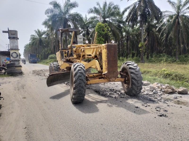 "Giat ini adalah rasa tanggung jawab dan rutinitas program PT Grahadura, dalam pekerjaan hari ini. ada Dua alat berat yang sedang bekerja, untuk perbaikan ruas jalan yakni road greader dan compactor diturunkan," jawab Humas.