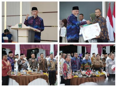 Ketua KPU Kabupaten Langkat, Sopian Sitepu, menyerahkan bendera merah putih sebagai tanda serah-terima Kirab Pemilu 2024 kepada Ketua KPU Kota Binjai, Zulfan Effendi, Jumat (14/04/2023).