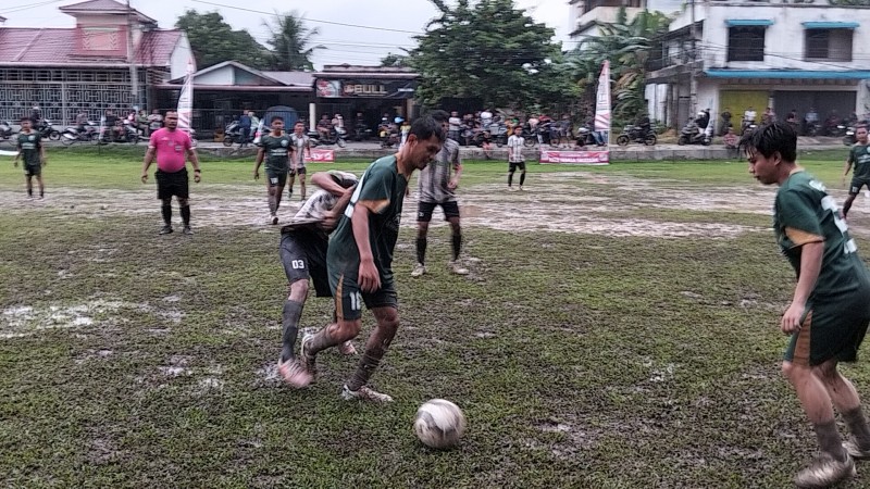 SIGAPNEWS.CO.ID | LABURA - Pertandingan fase grup G Turnamen Mini Soccer Piala Anggota DPRD Sumut Fraksi PKS Dedi Iskandar SE Cup berlangsung sengit meski usai diguyur hujan. Duel antara ASL FC asal Asahan melawan Persuja Grib B di Lapangan Tanah Rendah, Tanjung Sari, Aek Kanopan, Kecamatan Kualuh Hulu, Kabupaten Labuhanbatu Utara, pada Jumat (24/10/25), berakhir imbang dengan skor 1-1.