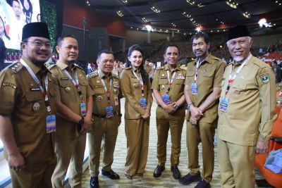 Irfan Asriandi SKom foto bersama para warga lansia, usai mengikuti senam bersama di GOR Jalan Jambi, Minggu (17/09/2023) pagi.