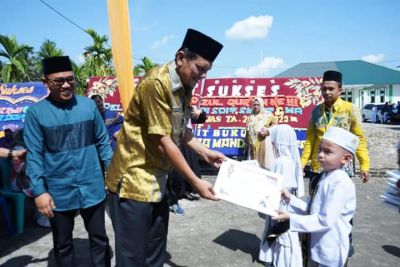 Pembina Yayasan Methodist Indonesia Kota Binjai, Peterus Long SH MM, diabadikan bersama para wisudawan TK Perguruan Kristen Methodist Indonesia Kota Binjai, Sabtu (17/06/2023).