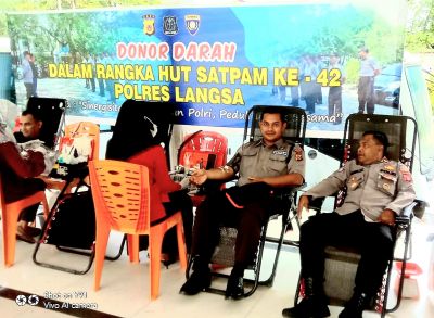 Kapolsek Kualuh Hulu Iptu Ghulam Yanuar Lutfi didampingi Kanit Intelkam Ipda Adlinsyah dan Kanit Lantas Ipda Zulpan Pasaribu serta Personil mengikuti giat sosial donor darah di kantor MPC Pemuda Pancasila Labura jln Angkatan 66 Kelurahan Aek kanopan