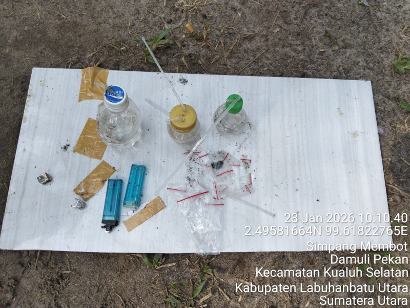 “Setibanya di lokasi, tepatnya di areal perkebunan sawit milik warga, personel menemukan sebuah gubuk tenda yang diduga kerap digunakan sebagai tempat transaksi jual beli narkoba. Namun saat penggerebekan berlangsung, tidak ditemukan pelaku maupun aktivitas transaksi narkoba,” ujar AKP Citra Yani.